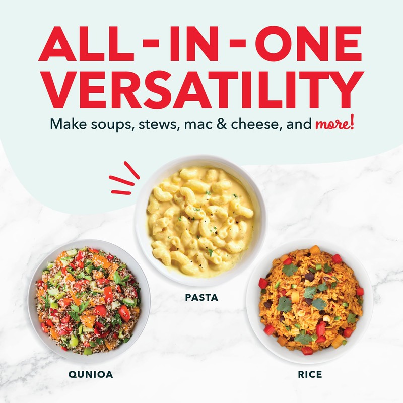 - MORE THAN RICE: Oatmeal, stew, soup, quinoa, rice, and pasta! The 2-cup capacity allows for healthier portion control, or individual, quick and easy breakfast, lunch, dinner, snacks, or sides.