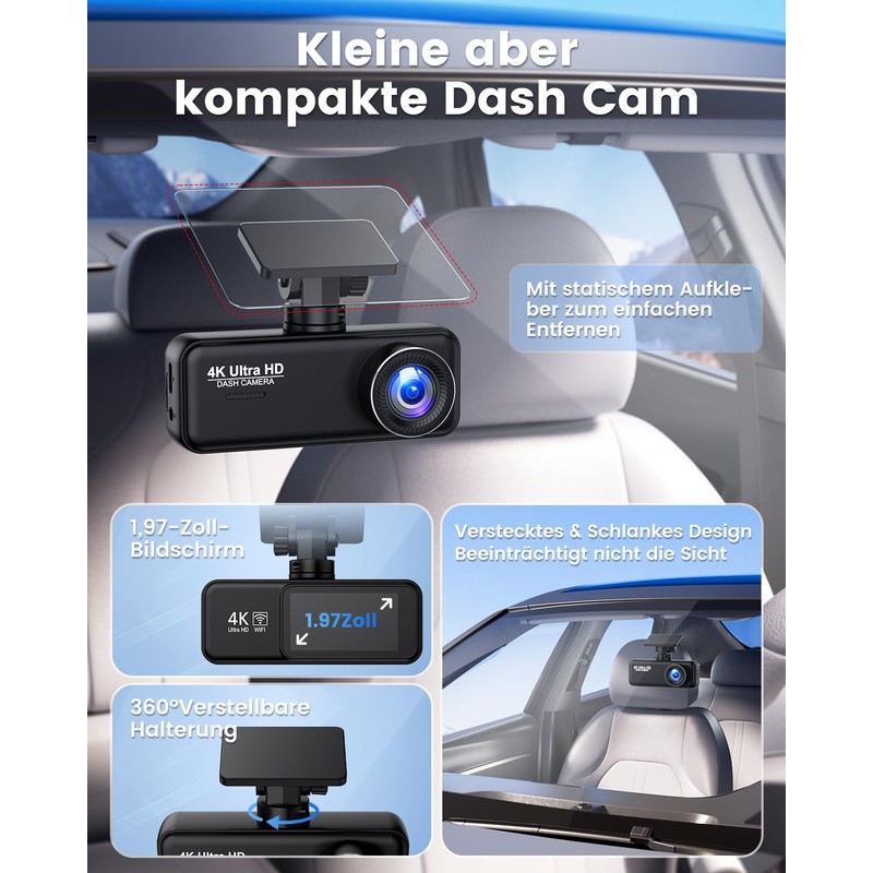 - 【Mini Dashcam Auto mit Mehreren Funktionen】Diese 4K dashcam wurde entwickelt, um alle Ihre Bedürfnisse beim Autofahren zu erfüllen. Ausgestattet mit einer 4K+1080P dashcam auto vorne hinten, erfasst sie sowohl die Straße vor als auch die Rückansicht gleichzeitig und sorgt so für eine umfassende Abdeckung. Egal, ob Sie täglich pendeln, eine Mitfahrgelegenheit nutzen oder auf langen Strecken unterwegs sind - mit den vielfältigen Funktionen dieser dashcam auto kabellos sind Sie immer geschützt und vorbereitet.