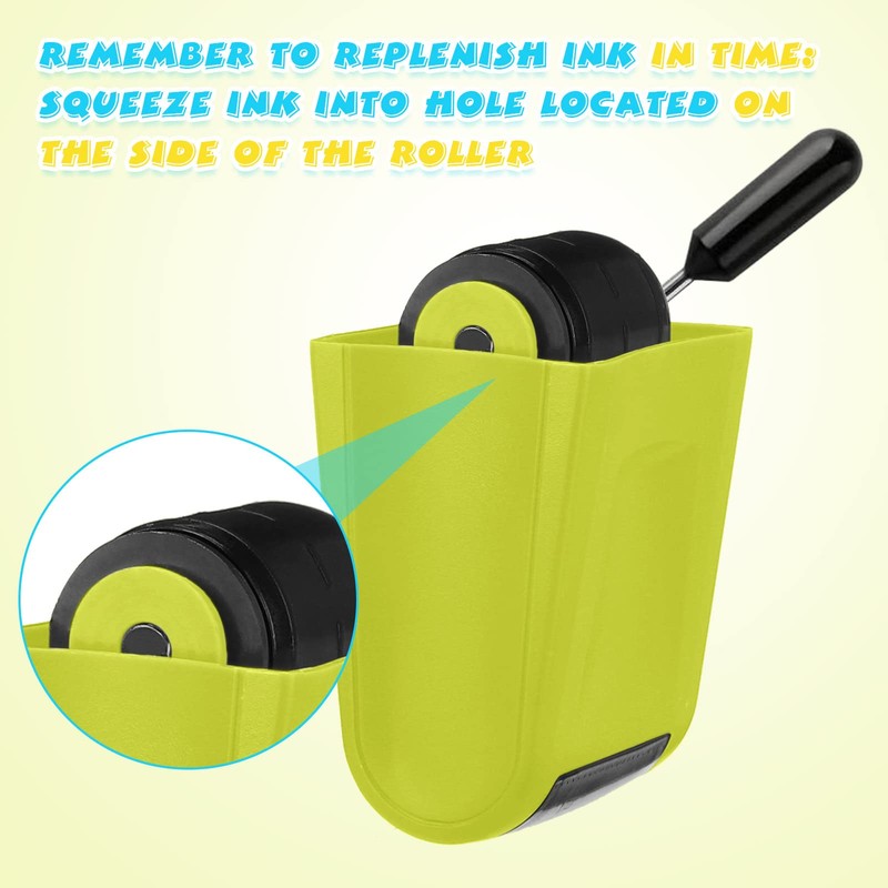 - Repeated Usage: there is a small hole on the side of the roller stamp to add ink to refill when it runs out; The total length covered by the stamps can reach 100 meters before filling; They can serve you for a long time