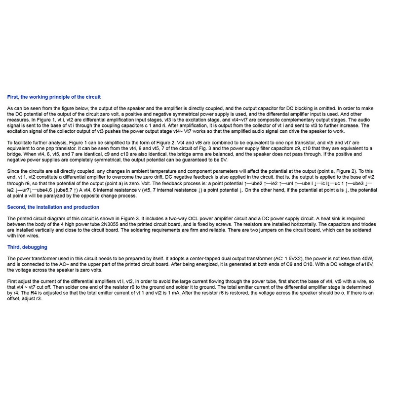 • This Power Amplifier Uses a Typical OCL Circuit, Which Has the Advantages of High Stability, Wide Frequency Response Range, Good Fidelity, etc. This Circuit is Often Used in High-Fidelity Sound Reproduction Equipment.