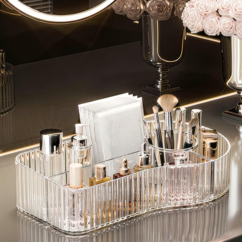 DASITON Make Up Organiser, 5 Compartments Cosmetic Organiser, Acrylic Brush Organiser, Cosmetic Storage, Large Capacity Dressing Table Organiser for Brushes, Eyeliners, Lipstick and Skincare