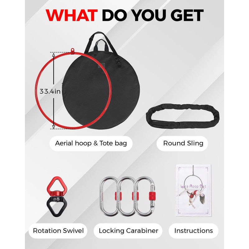 • 🚀 [COMPLETE READY-TO-USE PACKAGE] Includes heavy-duty waterproof storage bag (fits 85cm /90cm hoop). Illustrated manual covers installation for single/double point rigging. All hardware pre-sorted for quick setup. Compact design ideal for studio-to-studio transport.