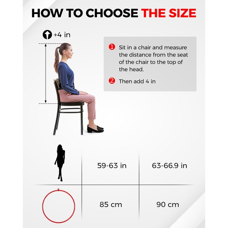 • 📏 [ACCURATE SIZE SELECTION GUIDE] Choose your ideal configuration from 4 precise combinations: Hoop Diameter: 85cm (33.5") or 90cm (35.4") Tube Thickness: 25mm (1") or 32mm (1.26") *Measuring Tip: Inner Diameter = (Seated height from chair to head top) + 4 inches * Important: Actual outer diameter is 1.2 inches larger than inner diameter