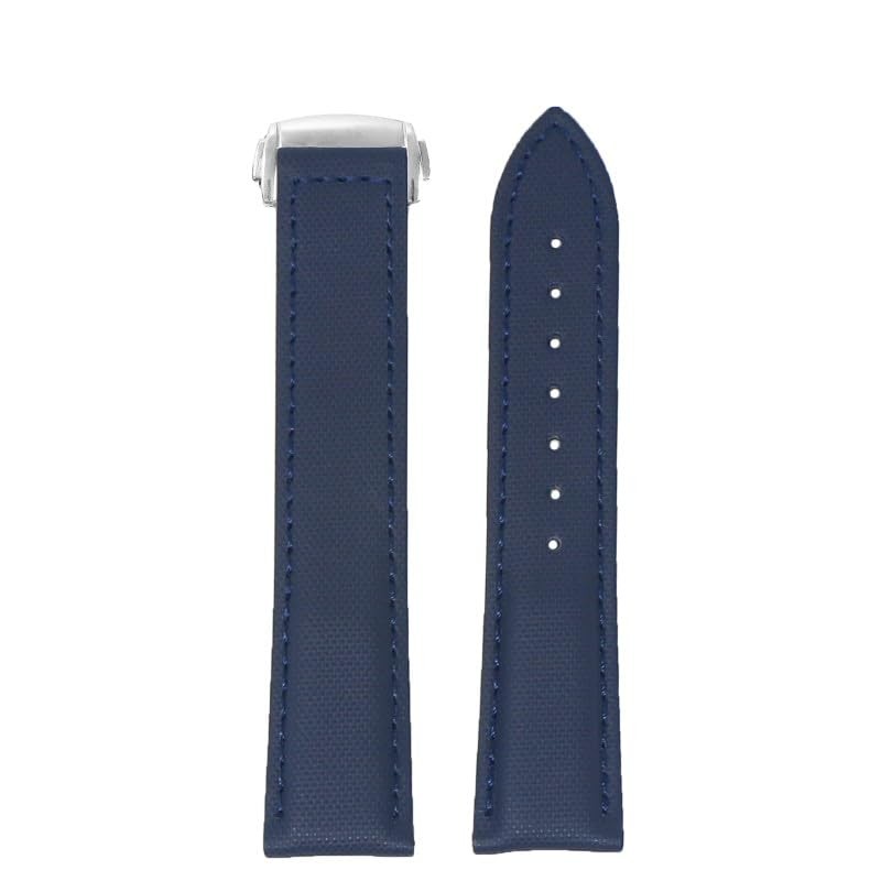 DASSARI Sailcloth Nylon Watch Band Strap with Deployant Clasp - Blue - 20mm - Polished Silver