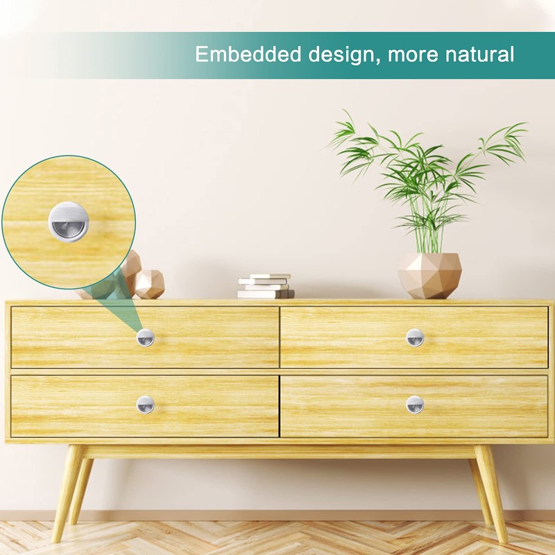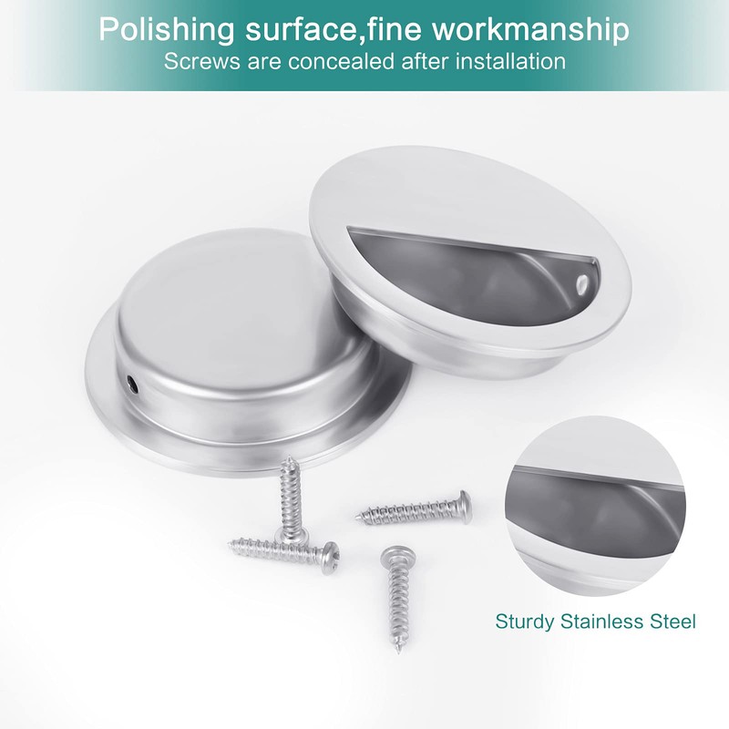 Dasyusuo Stainless Steel Recessed Handles, 4 Pieces, Round Inlet Handle, Concealed Handle, Stainless Steel Recess Handle with Screw, Round Grip Recesses for Drawers, Wardrobe, Cupboard