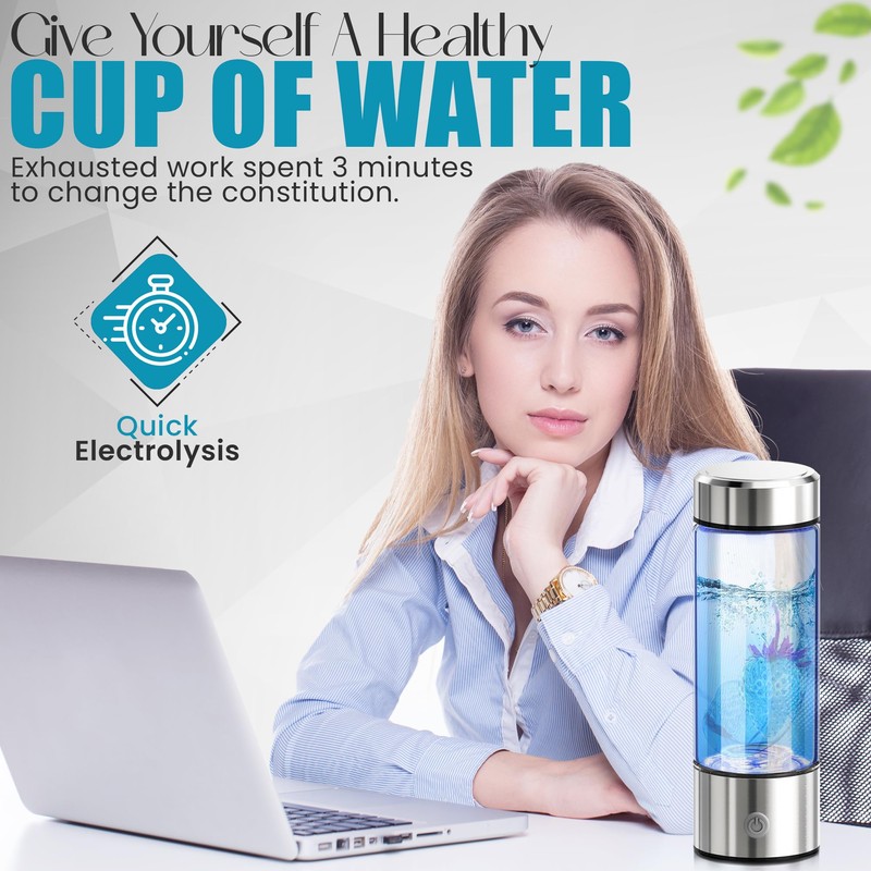 - 【Effortless 3-Minute Improve Water Quality 】Levate your hydration routine in just 3 minutes! Experience the convenience of on-the-go wellness without compromising on the quality of your hydration. Hydrogen Water Bottle uses SPE PEM technology to quickly generate up to 1400ppb (1.4ppm) of hydrogen ions in a single cycle, ensuring that every sip is infused with the goodness of molecular hydrogen.