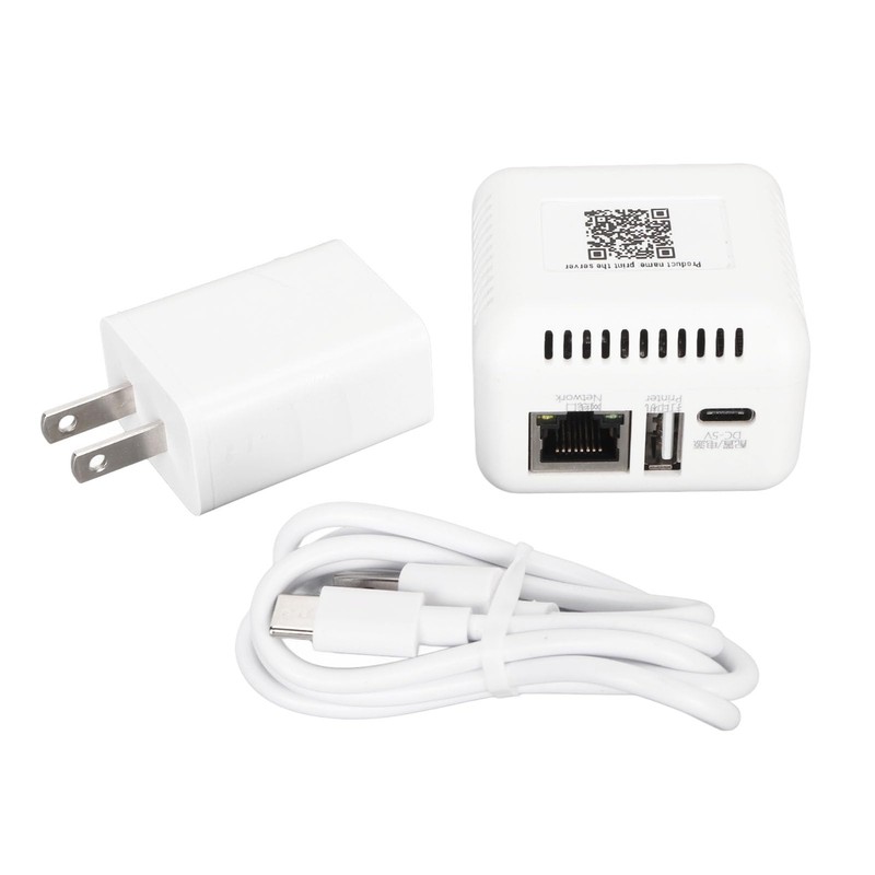 - MULTIPLE INTERFACES: Computer print server adapter with Type C power supply port, printer USB connection port, and network cable interface.