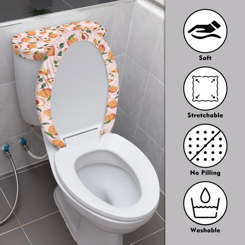 Daulesho Honey Peach Standard Toilet Seat Lid Cover Set Cartoon Honey Peach Toilet Seat Covers Pink Fruit Print with Elastic Edge Stays in Place