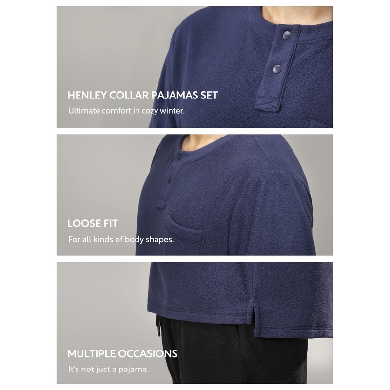 - ClASSIC & DURABLE PJS SET: The mens loungewear set with stylish henley collar design,and the polar fleece pajamas is no pilling,can stand the test of time.