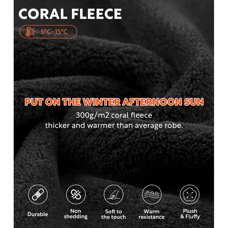 - THICKER & WARMER: Crafted with premium 300g/㎡ coral fleece fabric, The mens plush fleece robe is thicker and warmer than average robe offering a comfortable and toasty warp for you during the cold winter months.