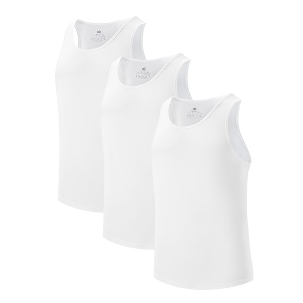 DAVID ARCHY Men's Tank Top Undershirt Moisture-Wicking Quick-Dry A-Shirts Soft Silky Undershirts Tank Shirt for Men 3 Pack(XL, White)