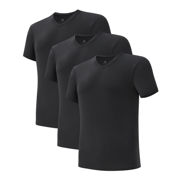DAVID ARCHY Men’s Undershirts Quickly-Dry T-Shirt,Stretch and Moisture-Wicking V Neck Tees,3 Pack (M, Black)