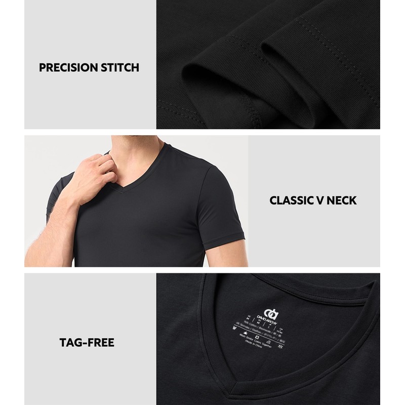 - BREATHABLE & SKIN-FRIENDLY: Micro-ventilation fabric with ultra-soft texture ensures irritation-free comfort. Ideal for sensitive skin when worn as men’s v-neck undershirts, with contoured sleeves that prevent bunching under dress shirts.