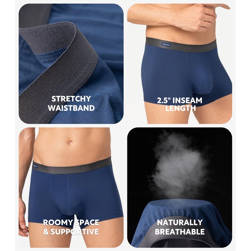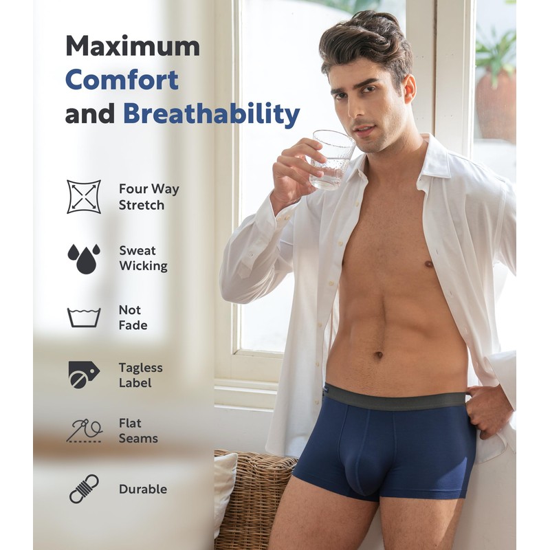 - NO FLY & CONTOUR POUCH: The tagless men’s trunks underwear with 3D support pouch provides more space and keeps men's private area comfortable without any sticky and isolating male anatomy from inner thighs.