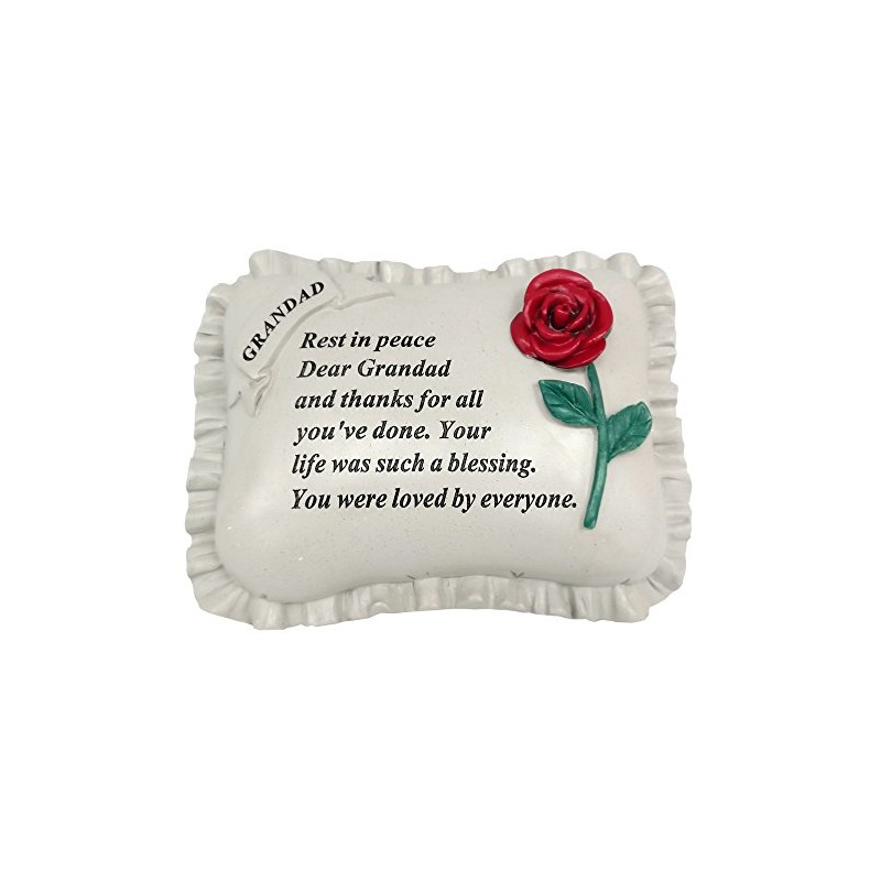 David Fischhoff Grandad Red Rose Memorial Pillow, Poly Resin, Cream, 1 Count (Pack of 1)