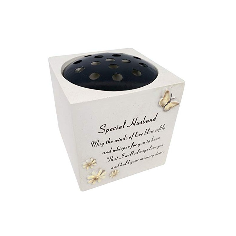 David Fischhoff Husband Butterfly & Flowers Design Verse Memorial Grave Rose Bowl, Weatherproof - for Graveside Flower Arrangements, 14 x 15 cm