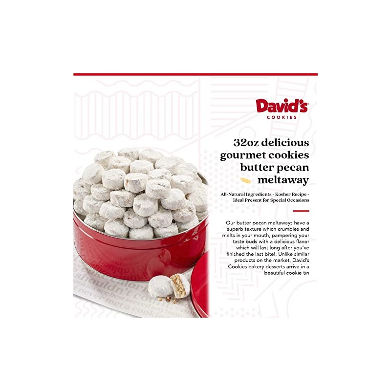David's Cookies Gourmet Butter Pecan Meltaway with Crunchy Pecans and Powdered Sugar, All-Natural Ingredients, Kosher, Ideal Present for Special Occasions, 32 Fl Oz, Pack of 2
