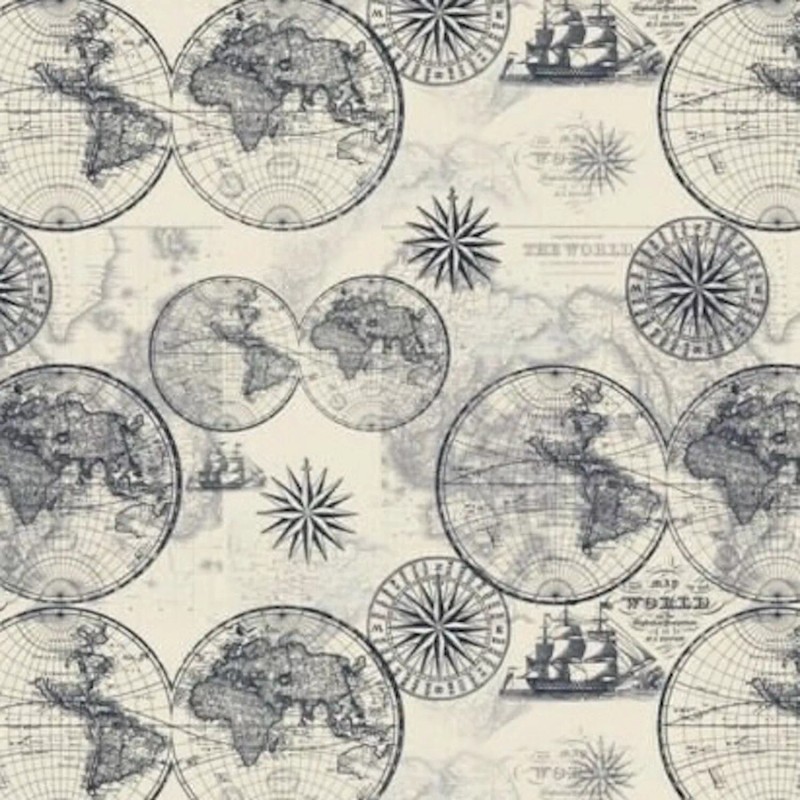 David Textiles Ocean Maps Lined Cream 100% Cotton Fabric by The Yard
