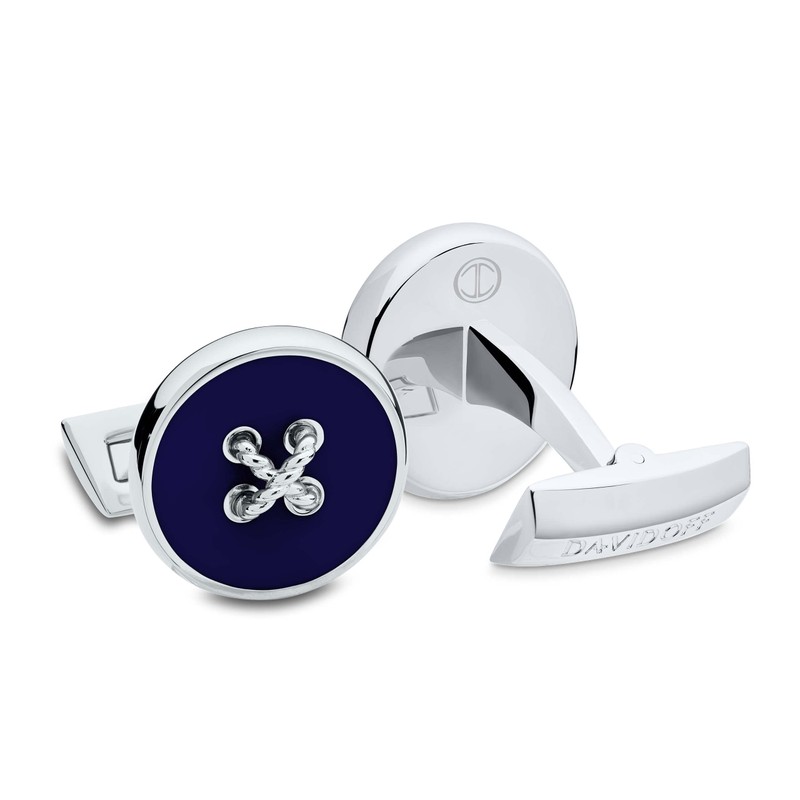 The DAVIDOFF Essentials cufflinks are the perfect companion for any modern man who wants to enhance his aesthetic look with timeless shapes. The rhodium-plated brass cufflinks in exclusive button look are decorated with a shiny dark blue lacquer. The cufflinks are closed with an asymmetric whale closure with DAVIDOFF logo. They are versatile and fit most fabrics and cuffs thanks to an optimised shaft length.