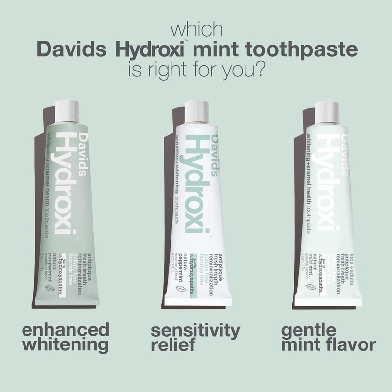 Davids Hydroxi Fluoride Free Nano Hydroxyapatite Toothpaste for Remineralizing Enamel & Sensitive Relief, Whitening, Antiplaque, SLS Free, Natural Peppermint, 4 oz, Made in USA