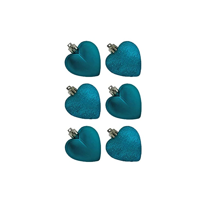 Davies 6 Pack 50mm Glitter / Plain Hearts Christmas Decoration - Teal