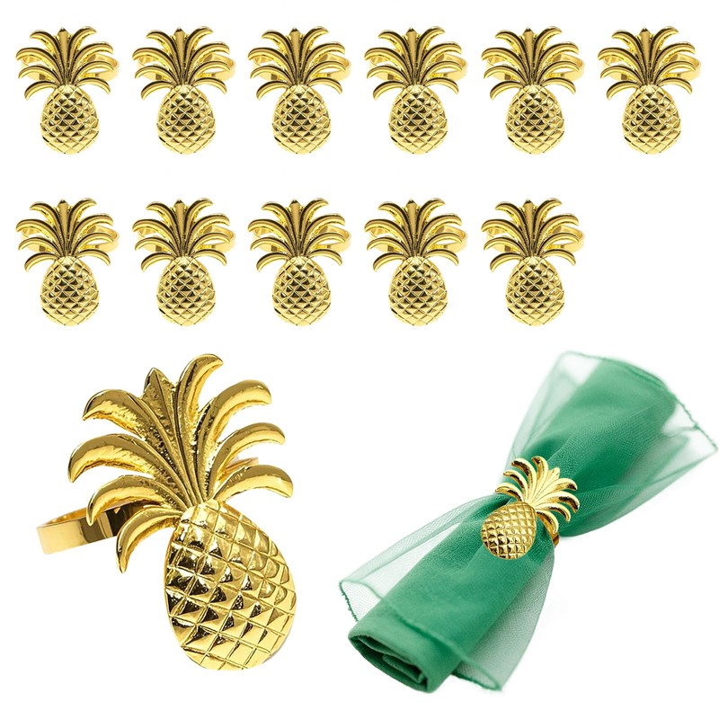 - Make your summer of love with lifelike Pineapple napkin rings ! Each yellow napkin holder ring features a vivid Pineapple detailed metal fruit design.The shiny gold napkin rings bulk catches the light, doubling as garden parties table decorations that spark conversation.