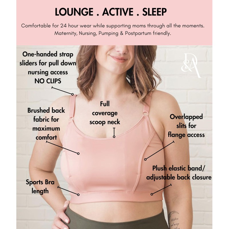 - LOUNGE, ACTIVE, SLEEP – Our 3-in-1 hands free pumping and nursing bra is designed to be worn as a sports bra, or a lounge and sleep bra. Adjust your straps as needed. Our unique OEKO-TEX certified fabric is soft enough you will want to wear with your sweats and supportive enough to wear out! The Amelia Bralette is a must have for every pregnant and postpartum mom!