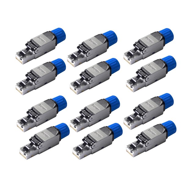 Davonpha Cat8 Tool-Free RJ45 Connectors 12-Pack - Shielded Industrial Ethernet Plugs for 40Gbps/2000MHz, 22-26 AWG Cat8/Cat7/Cat6a Cables, PoE++ Ready with Full Metal Shielding (Cat8 12-Pack)