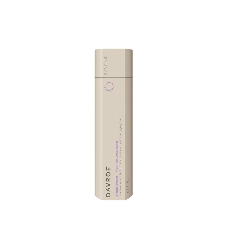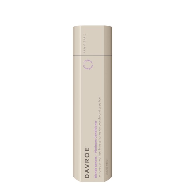 What are the benefits and features of Davroe Blonde Senses Platinum Conditioner 325ml?- Removes unwanted brassy yellow tones from blonde or grey hair.