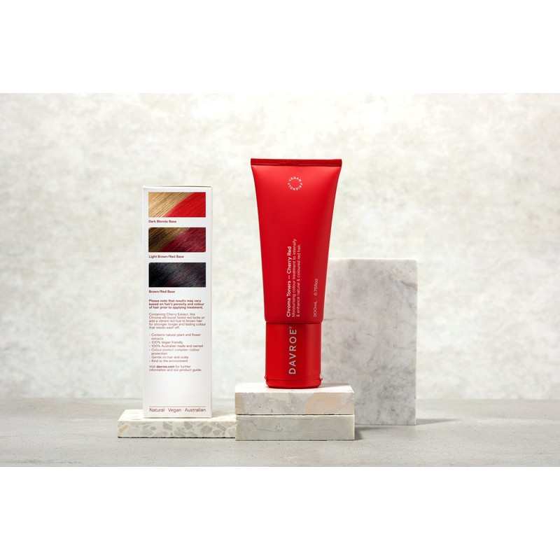 What are the benefits and features of Davroe Chroma Toner - Cherry Red 200ml?- Re-awakens faded red hair with deep vibrant red hues.