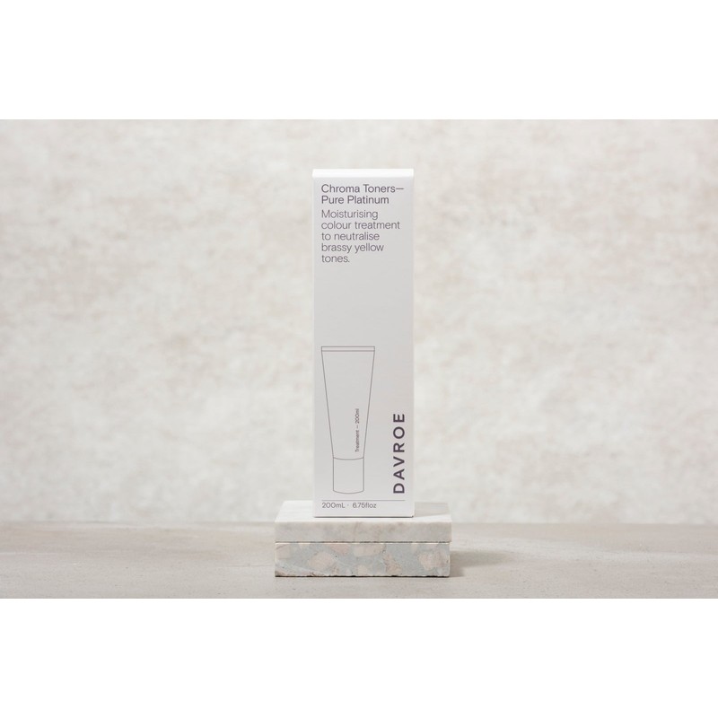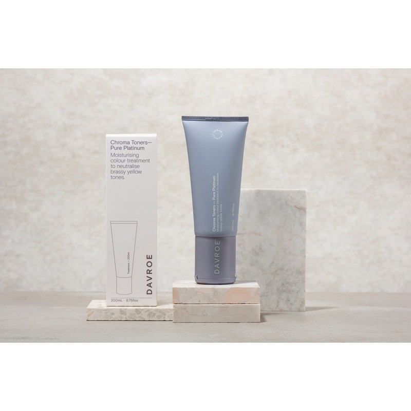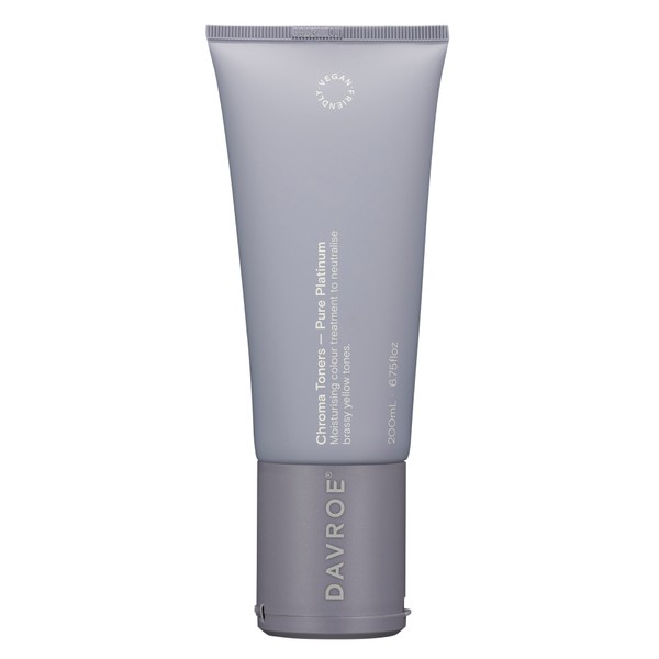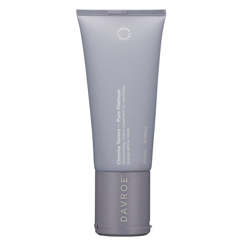 Davroe Chroma Toner - Pure Platinum 200ml is a hair toner that eliminates strong yellow, gold, and brassy tones from blonde hair, leaving it with cool, platinum/silver reflects.