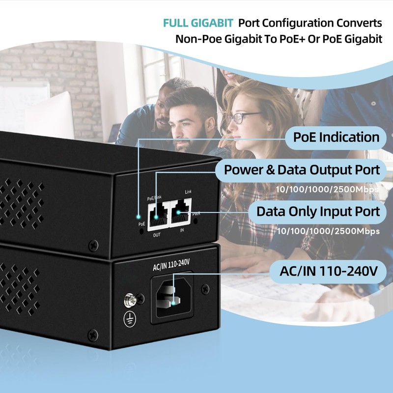 - RELIABLE POWER SUPPLY: Power your PoE devices with up to 90W of Power over Ethernet with our 2.5g PoE+ injector. It enables seamless network connectivity and is a must-have for your networking needs.