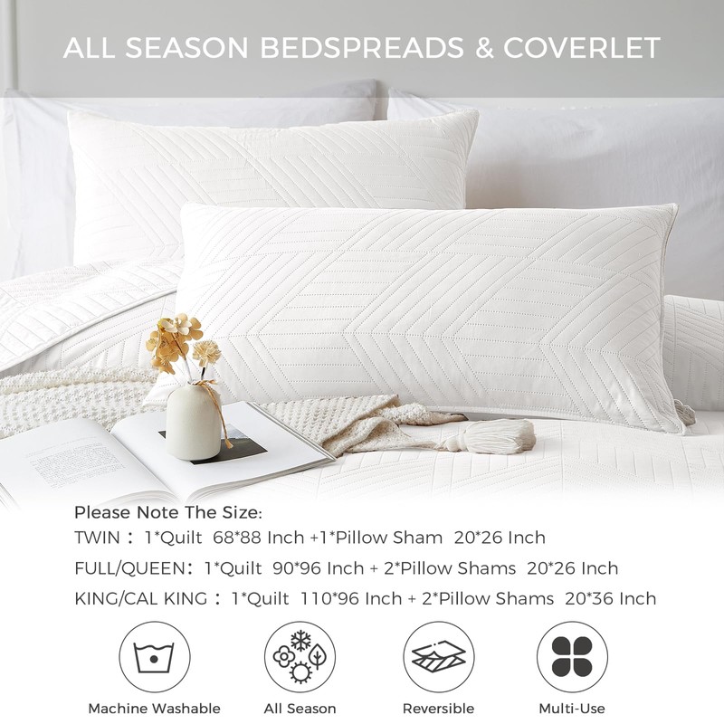 - EASY CARE BED COVER - This white lightweight coverlet is easy to care, it's machine-washable and easy to maintain, washes & dries well without pilling or fading. The bedspread also featuring embossed patterns which decors your room. Please Wash the quilt in cold water and tumble dry in low cycle. PLEASE DO NOT BLEACH!