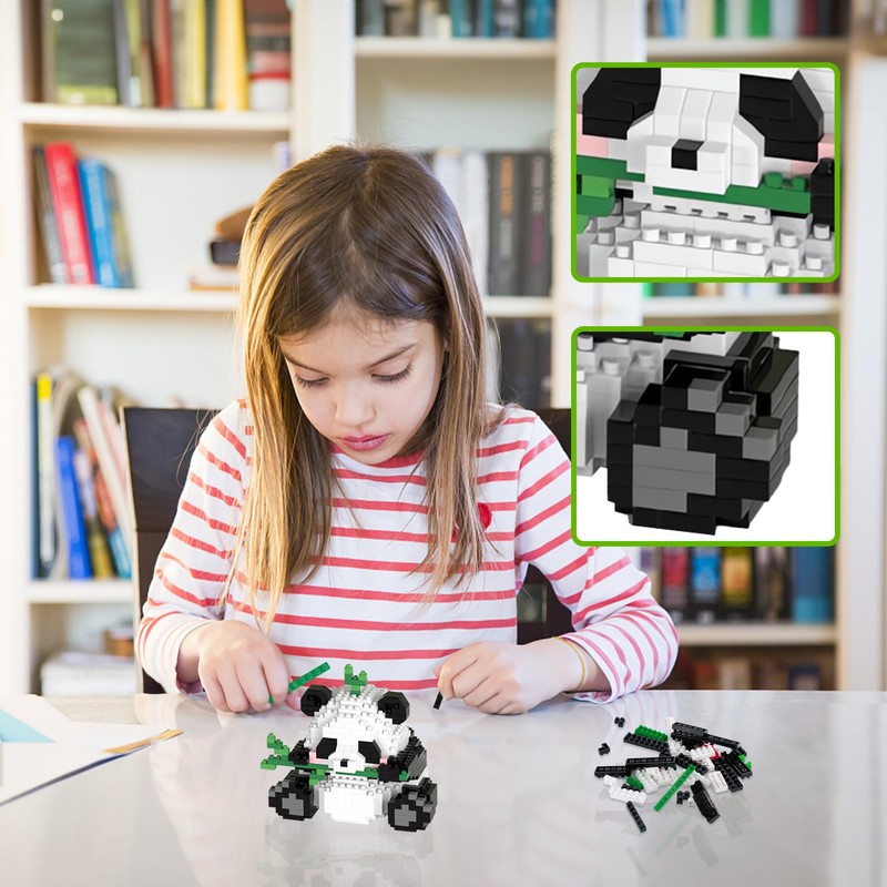 - Mini building block sets: the small panda consists of 720 pieces of mini building blocks of the highest quality. Compared to the traditional size building kits, this animal party favors toys for children has better compactness, higher occlusion between the building blocks. Please note that this is the MINI building blocks, which means that some of the blocks are less than 10 mm.