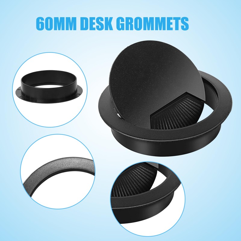- - 2 Pcs desk hole cover 60mm, cable grommet consists of 2 parts: the outer ring and the removable cover.