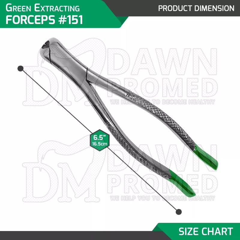 DawnProMed Green Extracting Forceps #151 Color Coated Handle Dental Instrument German Grade