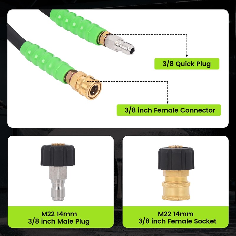 - Versatile Applications: Ideal for commercial & industrial use, and also suitable for cleaning cars,automobiles, motorcycles, floors, windows, driveways, roofs, swimming pools, siding, and so on. Compatible with most pressure washers. If you need any help with this pressure washerhose, please feel free to message us at any time.