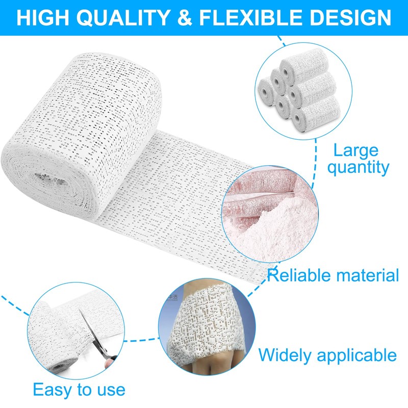 - 【Plaster of Paris】: Each of the bandaging rolls is prefilled with plaster powder. Simply dip the plaster-impregnated bandage into water and apply it to the skin or shape and form it as you wish. The papier mache wraps are quick to dry too