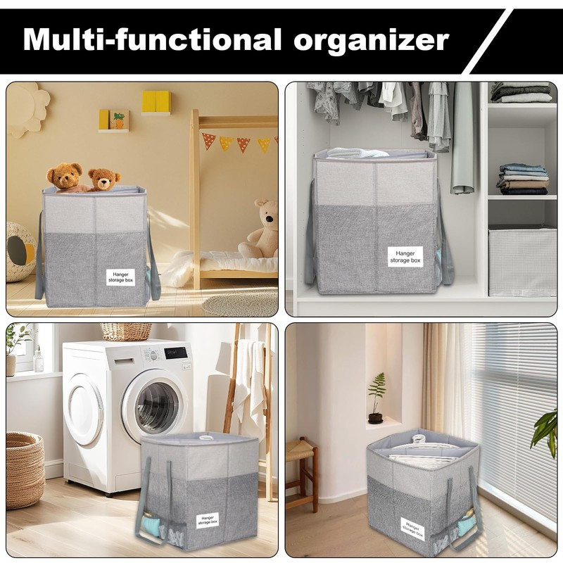 - Dresistant and Large Capacity:Our hanger storage organizer box is made of sturdy material, suitable for long-term use. The size of this hanger organizer bag is 37x37x43cm/14.6x14.6x17in and can hold more than 100 thin velvet hangers,helping you organize your spare hangers and keep your closet tidy