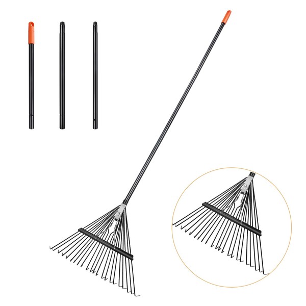 Daxguard Daxguard High-Carbon Steel Gardening Leaf Rake, Suitable for Raking Leaves and Lawn Tidying,Adjustable Split Long Handle33-67, 22tines 22.8" Wide,Garden rake and thatch rake Suitable for Adults