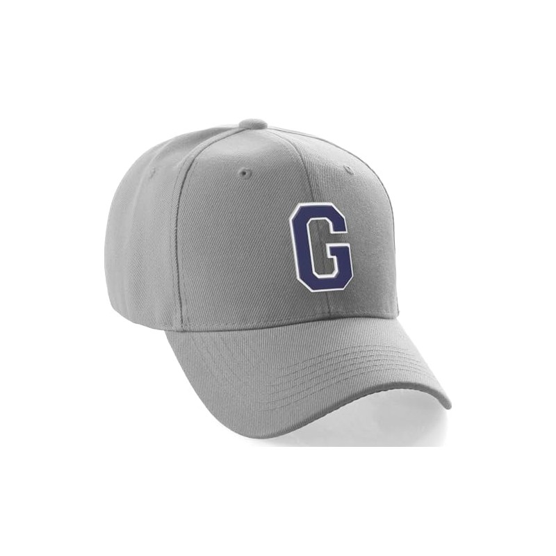 Daxton Classic Baseball Hat Custom A to Z Initial Team White Navy Letter, Light Gray Cap Letter G