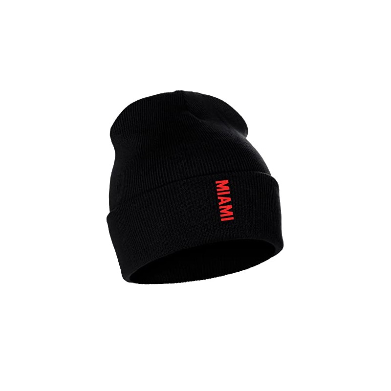 Daxton Vertical USA Cities Cuffed Beanie Winter Knit Hat Skully Cap, Miami Black Red