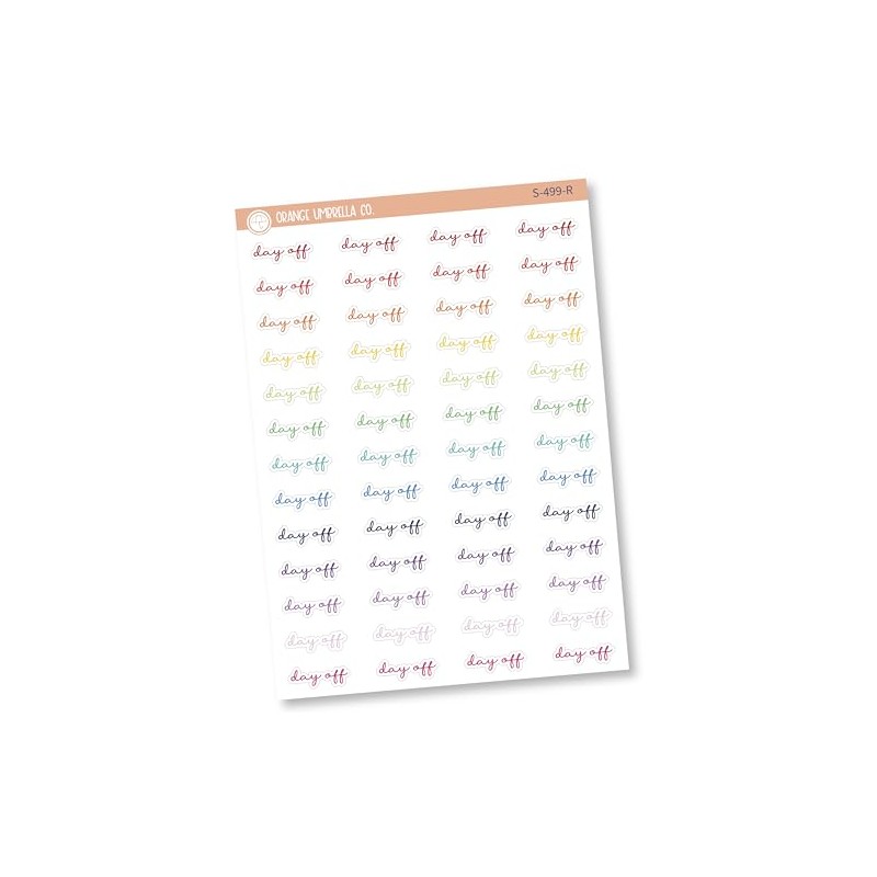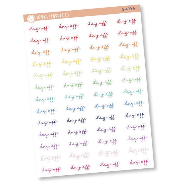 Day Off Planner Stickers, Script "Day Off" Planner Labels, Color Printed Planning Stickers, F5 (S-499-R) Rainbow