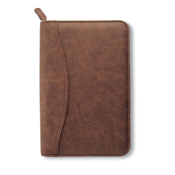 Day-Timer Simulated Distressed Leather Organizer Starter Set, Zip Closure, 8.5 x 5.5 Inches, Brown (D43074)
