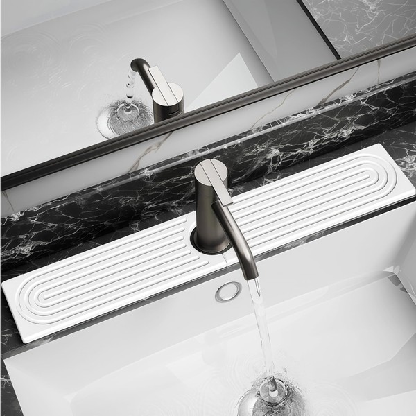 Dayacoco Faucet Mat for Kitchen Sink,Super Absorbent Diatomite faucet mat, Quick Drying Stone Sink Tray, Faucet Splash Guard for Kitchen,Bathroom Counter (White, 23.6" x 3.9")