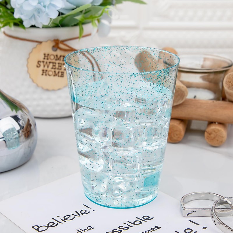 - Excellent Quality: Made of durable high quality 100% food grade BPA free non-toxic heavy duty plastic. These 10 oz blue glitter cups are protected with a box of hard materials that are not easily scratched or broken.