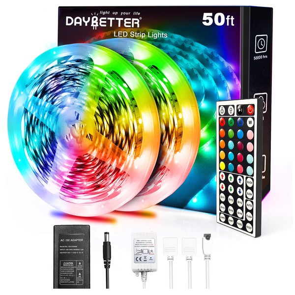 DAYBETTER 5050 RGB Infrared Remote Control Color Changing 50ft Led Strip Lights