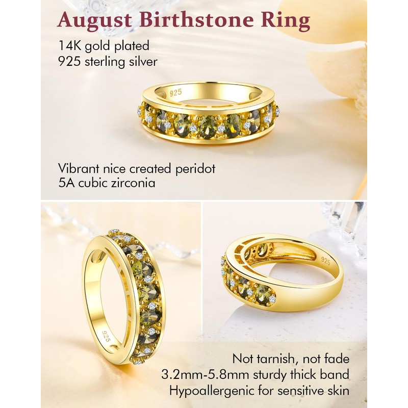 - Peridot Rings for Women: This half eternity ring is set by hand with 4*3mm oval cut vibrant created peridot and 5a cubic zirconia, its exquisite channel setting ensures maximum security for the stone while enhancing their brilliance and sparkle