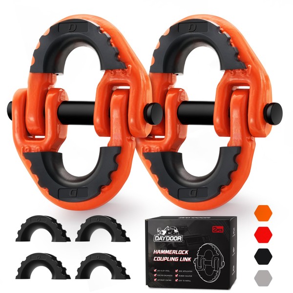 DAYDOOR 1/2" Safety Chain Connector Link, G80 Tow Hitch Hammerlock Coupling Link with 12000 lbs Capacity, Tow Chain Connector with Rubber Isolators for Trucks, Trailers, SUVs(2-Pack)(Orange)