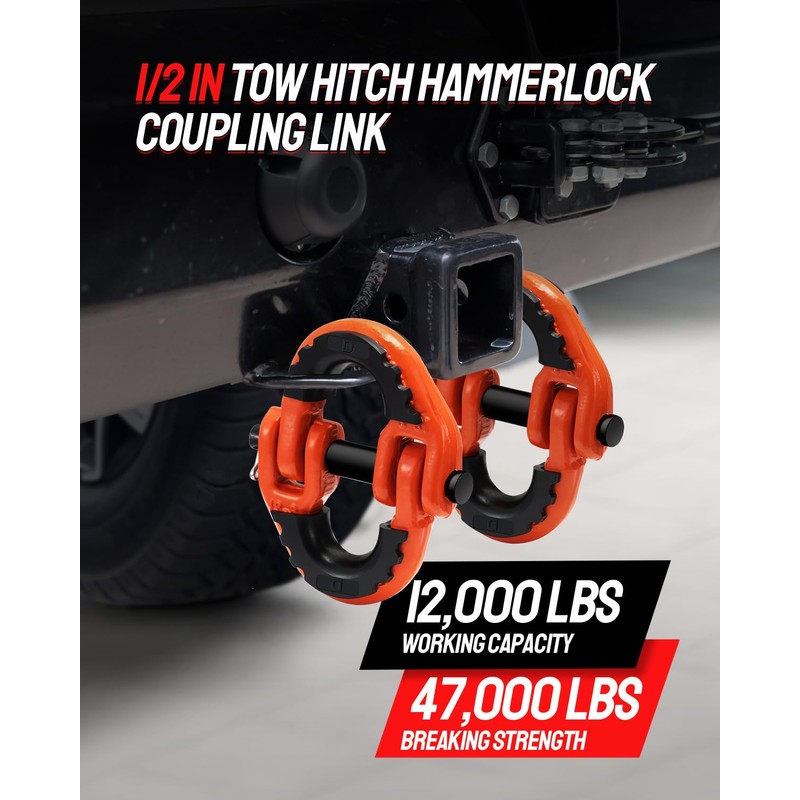 - Heavy - Duty G80 Alloy Steel Construction: The hammerlock coupling link is made of heavy - duty, durable premium G80 alloy steel. The steel offers superior corrosion resistance and a robust 12,000 lb load capacity (47,000 lb breaking strength), preventing rust and corrosion.The robust construction ensures long-term reliability in extreme weather conditions and heavy-duty towing applications